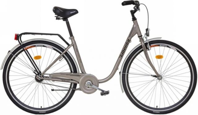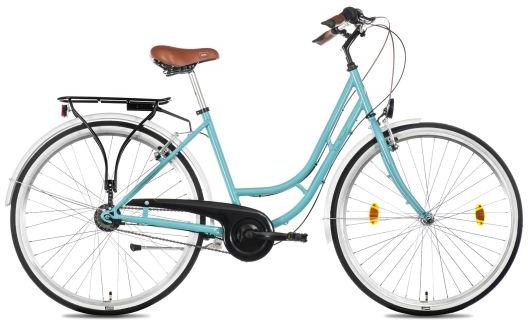 Városi kerékpár 28" méretben, leengedett vázzal, DOUBLEWALL felnikkel, első V-fékkel, hátsó csúszásgátlóval és teljes közúti felszereléssel.