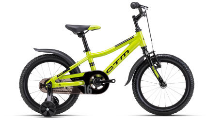 Gyermek kerékpár. Hi-ten MTB 16" váz. Hi-ten unicrown villa. Acél (32T chainwheel) hajtómű. Elől V-fék, hátul kontrafék. RUBENA Winner 47-305 (16x1.75x2) külső gumi.