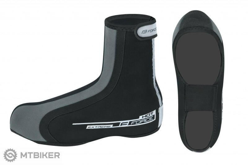 Force Hot Extreme tornacipőhuzatok Az ujjakon 2 lyuk van a talpon, oldalán a rögzítés cipzárral , felül pedig fényvisszaverő tépőzáras pánt található. A felsőrészen egy központi tépőzáras talp zárószalag is található.
