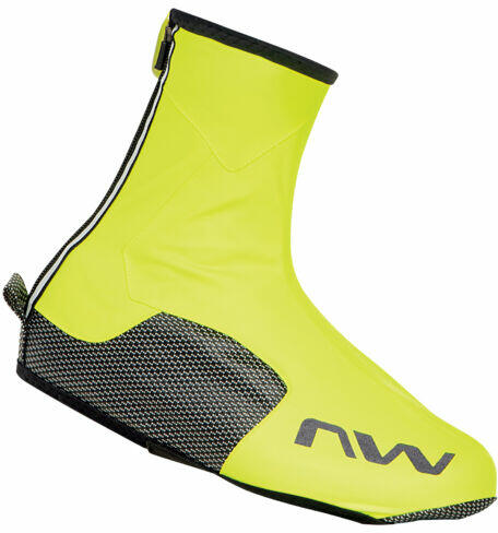 A Northwave Extreme H20 cipők vízállóak és védenek a széltől . Az ujjak anyaga poliuretán . Az ujjak meleg polár béléssel, membránnal, teljesen ragasztott varrással és aerodinamikus szabással rendelkeznek . Alsó része kopás elleni gumiréteggel van ellátva, a hátsó részen fényvisszaverő YKK cipzár található. Magasság: 23 cm Rögzítés : YKK