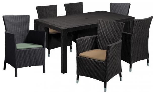 Gyártó: Curver Modell: Meliowa 6 fős kerti bútor garnitúra Leírás: Meliowa étkezőasztal szett, amely tartalmaz egy Melody asztalt és hat darab Iowa karfás széket a hozzá tartozó párnával. Az eredeti, rattan-szerű felület meg fog felelni még a legigényesebb felhasználók számára is. A termék nagyon könnyen összeszerelhető és karbantartható. A bútorok felülete ellenál