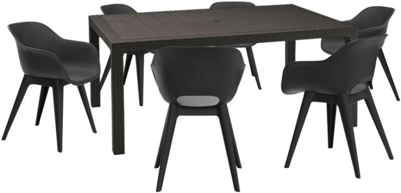 Termékleírás A Romy 6+1 kerti bútor szett jellemzői Ez a grafit színű , kényelmes és elegáns bútor szett hat darab 57X 56X81 cm-es széket , és egy 160X95X75 cm-es asztal t foglal magában. Ez a 6 személyes kerti bútor szett rendkívül előnyös lehet, ha szeretnéd kiélvezni a szabadban eltöltött időt barátaiddal vagy családoddal. I deális elemként szolgál a kert, erkély