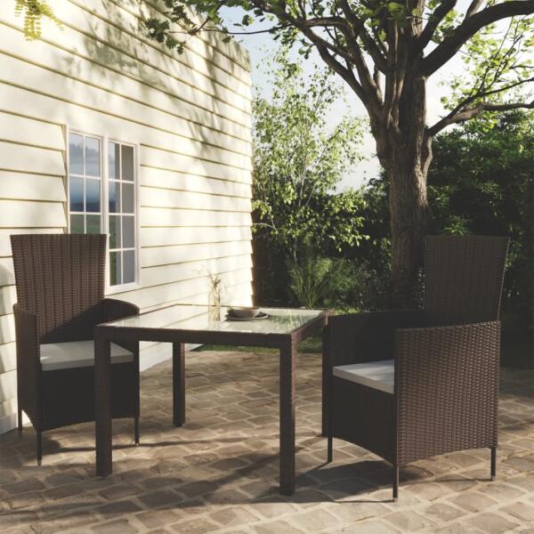 Az elegáns kialakítású és tartós acél vázzal ellátott étkezőszett tökéletes választás kültéri környezetébe. Ez a kerti étkezőgarnitúra porszórt acélvázzal rendelkezik, mely az asztalt és a székeket is stabillá és tartóssá teszi. Az időjárás viszontagságainak ellenálló, vízálló polyrattannak köszönhetően az étkezőgarnitúra könnyen tisztítható. A vast