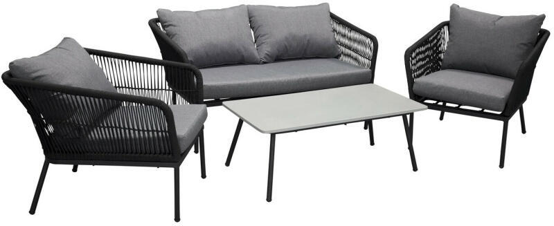 Teremtse meg azt a mutatós pihenőhelyet, melyre mindig is vágyott! Élvezze a nyugodt, napsütötte délutánt vagy a nyári estét családja és barátai körében ebben az elemes bútorgarnitúrában! Az időjárásálló polietilén rattannak köszönhetően ez a kültéri ülőgarnitúra könnyen tisztítható és kezelhető. A porszórt acél váz stabillá és masszívvá teszi a kerti b