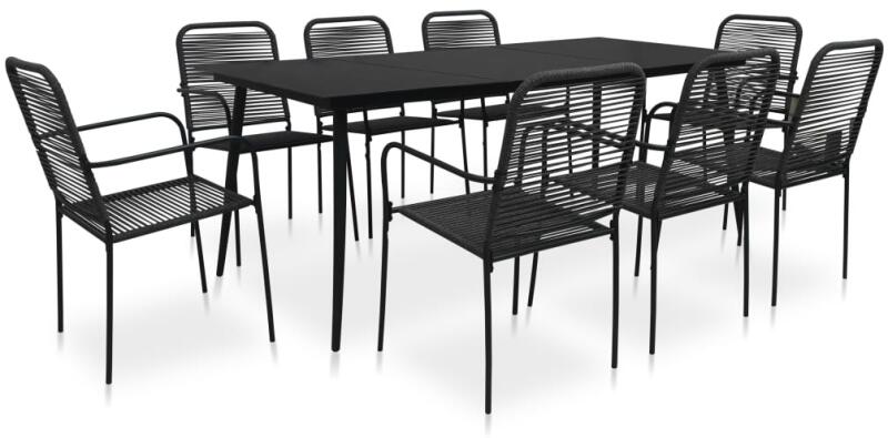 Kilenc darabból álló, elegáns kialakítású és letisztult vonalakkal rendelkező étkezőgarnitúránk nagyszerű kiegészítője lesz kertjének, teraszának, verandájának, de a konyhában vagy az étkezőben is remekül mutat. Az étkezőgarnitúra egyszerű eleganciája különlegessé teszi a mindennapi vacsorákat. A háttámla és az ülés sodrott pamutkötélből készült, amely p