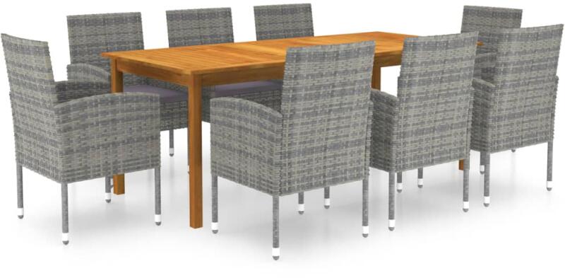 Csempésszen otthonába egy impozáns, odaillő esztétikai megoldást, és fogyassza el vacsoráját kényelmesen a kertben ezzel az étkezőszettel! Az étkezőasztal olajbevonatú, tömör akácfából készült, így stabil, tartós és könnyen karbantartható. A porszórt acélváz időjárásálló polyrattan burkolattal lett ellátva, ezért az étkezőszékek strapabíróak, valamint kön