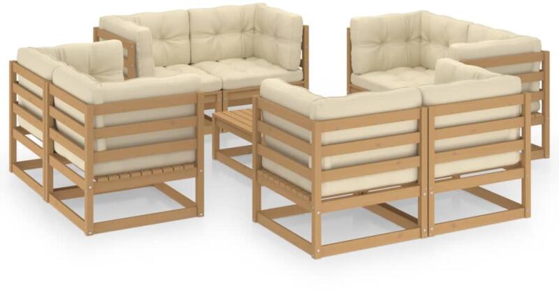 Ez a kerti bútorgarnitúra remek választás pihenéshez, a jó idő élvezetéhez, szundításhoz, vagy a családtagjaival és barátaival való beszélgetéshez. Ez az udvari bútorgarnitúra tömör fenyőfából készült, ami erős és stabil tartást kölcsönöz neki. Könnyen kombinálható más elemekkel, így akár összeállíthatja egyéni elrendezésű kerti bútorgarnitúráját is.