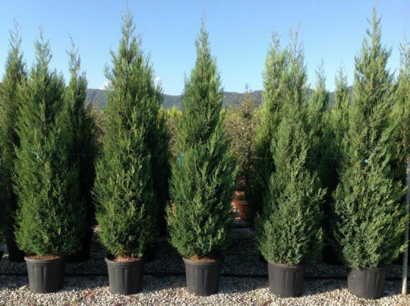 CUPRESSOCYPARIS LEYLANDII BLUE JEANS LV 9 MINI STANDARD kéklevelű leyland ciprus A Leyland ciprus (Cupressus × leylandii) egy gyorsan növõ, örökzöld tűlevelű fa, amelyet gyakran használnak sövénynek vagy szélfogónak. Magassága akár 15-25 méter is lehet, szélessége pedig 5-6 méter. Levelei sötétzöldek és pikkelyszerűek, szorosan helyezkednek el az ágakon, sűrű, tömött