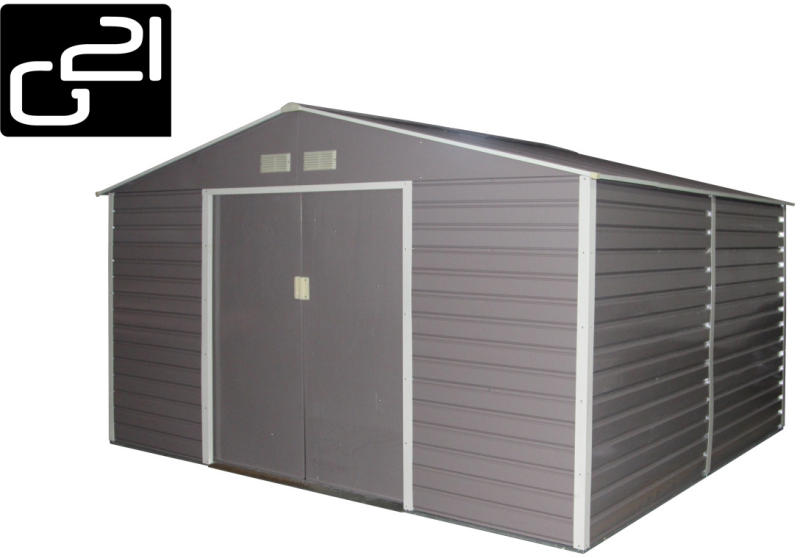 Gyártó: G21 Modell: GAH 1300 340x383 cm Leírás: A G21 GAH 1300 kerti házikó ideális tárolási lehetőséget nyújtegész évben a szerszámoknak, bútoroknak, motorkerékpároknak, fűnyíróknak, bozótvágónak, kerékpároknak, a medence tartozékainak éssok más használati cikknek, amelyek nem férnek be a házba. A kerti házikó modern megjelenésben két nagy tolóajtóvalrendelke