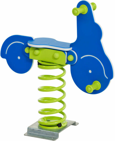 Az idojárás viszontagságainak ellenálló óvodai rugósjáték , mely a nyitott ülés révén nagyobb gyermekeknek is alkalmas. MSZ-EN-1176 szabvány szerint közületi - köztéri felhasználásra alkalmas. A játék rendelkezik a TÜV alkalmassági tanúsítványokkal. Anyagok:Felépítmény: magas szilárdságú HDPE kompozit anyagRugó: porfestett acélTalp: Tüzihorganyzott acélHossz95