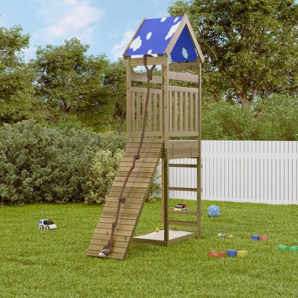 Szeretné, ha gyermekei szabadon játszhatnának otthon? Ez a fából készült játszószett varázslatos kalandok játszóterévé varázsolja kertjét! Tartós anyag: Ez a mászóka vákuumnyomással impregnált fenyőfából készült. A tömör fenyőfa az erősségéről és tartósságáról ismert. Egyenes erezete és jellegzetes csomói hozzájárulnak rusztikus varázsához. Konzerváló