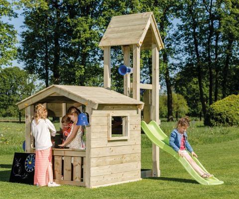 Szeretné, ha gyermekei szabadon játszhatnának otthon? Ez a fából készült játszószett varázslatos kalandok játszóterévé varázsolja kertjét! Tartós anyag: A játszószett váza tömör fenyőfából készült. A tömör fenyőfa az erősségéről és tartósságáról ismert. Egyenes erezete és jellegzetes csomói hozzájárulnak rusztikus varázsához. Stabil fa váz: A kerti já