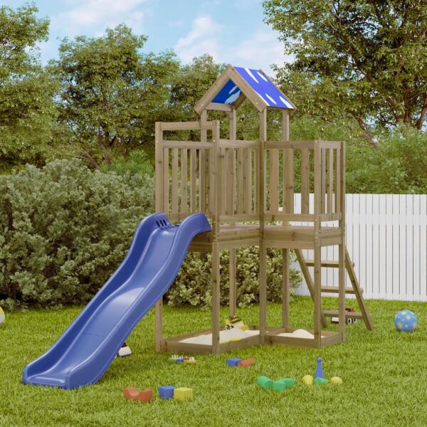 Szeretné, ha gyermekei szabadon játszhatnának otthon? Ez a fából készült játszószett varázslatos kalandok játszóterévé varázsolja kertjét! Tartós anyag: Ez a kerti játszószett vákuumnyomással impregnált fenyőfából készült. A tömör fenyőfa az erősségéről és tartósságáról ismert. Egyenes erezete és jellegzetes csomói hozzájárulnak rusztikus varázsához. Ko