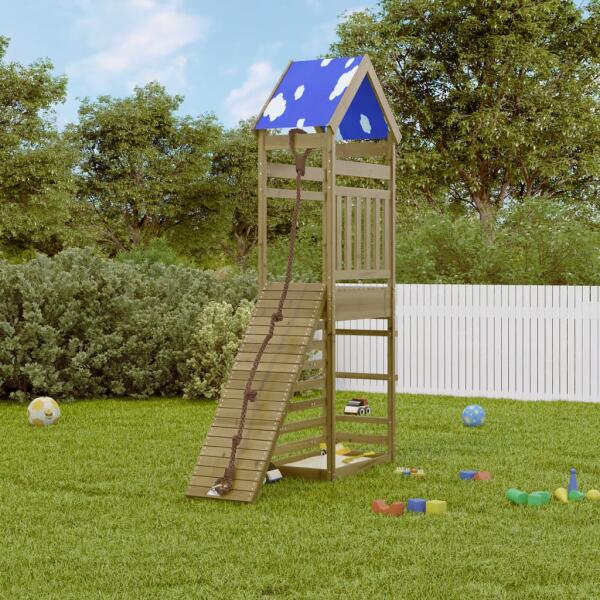 Szeretné, ha gyermekei szabadon játszhatnának otthon? Ez a fából készült játszószett varázslatos kalandok játszóterévé varázsolja kertjét! Tartós anyag: Ez a mászóka vákuumnyomással impregnált fenyőfából készült. A tömör fenyőfa az erősségéről és tartósságáról ismert. Egyenes erezete és jellegzetes csomói hozzájárulnak rusztikus varázsához. Konzerváló