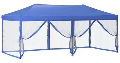 vidaXL kék összecsukható rendezvénysátor oldalfalakkal 3x6 m Ez a nélkülözhetetlen összecsukható rendezvénysátor kiváló helyszínt biztosít szabadtéri rendezvények széles skálájához, például családi összejövetelekhez, grillezéshez, délutáni piknikhez, kempingezéshez, születésnapi bulikhoz stb. Összecsukható kialakítás: A sátor a könnyű tárolás és szállít