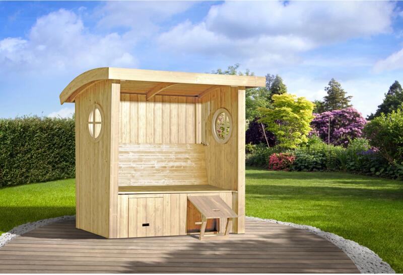 A Weka kerti lugas Merano a kültéri és wellness részleg szembetűnő látványossága. A relaxációs lugast elhelyezheti a kertben, a teraszon vagy az erkélyen, vagy variálhatja a teret. A csiszolt tömörfa rusztikus megjelenést kölcsönöz a lugasnak, amely a kerek tetővel és a két oldalablakkal harmonikus egésszé válik. Az ülés alatti tárolóhelyen nemcsak kedvenc könyve, han