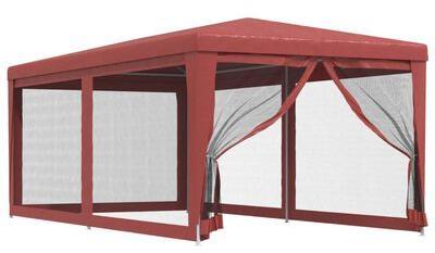 vidaXL piros HDPE rendezvénysátor 6 hálós oldalfallal 3 x 6 m Ez a nagy teherbírású vasvázzal, vízálló tetővel és hat hálós oldalfallal rendelkező, rendkívül menő rendezvénysátor ideális menedéket nyújt a nap ellen. Prémium minőségű anyag: Ez a pavilon nagy sűrűségű polietilénből (HDPE) készült, amely megvéd a közvetlen napfénytől és elegendő szelet enged