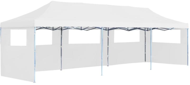 vidaXL fehér összecsukható rendezvénysátor 5 oldalfallal 3 x 9 m Az összecsukható sátrunk ideális választás szabadtéri tevékenységek széles köréhez, például bemutatókhoz, vásárokhoz, sport eseményekhez, esküvőkhöz, kerti bulikhoz, sütögetésekhez, kempingezéshez, fesztiválokhoz stb. A kültéri sátor UV- és vízálló tetővel lett ellátva, ami PVC-bevonatú oxford