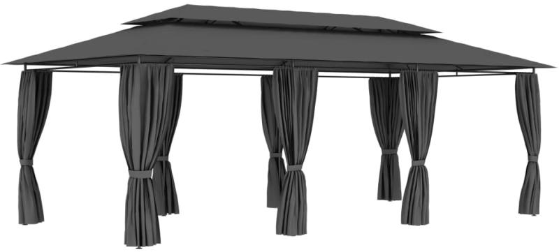 vidaXL antracitszürke pavilon függönyökkel 600 x 298 x 270 cm Ez a pavilon bármilyen kültéri esemény számára kiváló, mint például show-műsorok, esküvők, grillpartik, kempingezés stb. Felállíthatja a kertjében is, hogy tágas, árnyékos menedéket nyújtson családja és vendégei számára. Ez a praktikus rendezvénysátor cső alakú acélvázának köszönhetően erős és