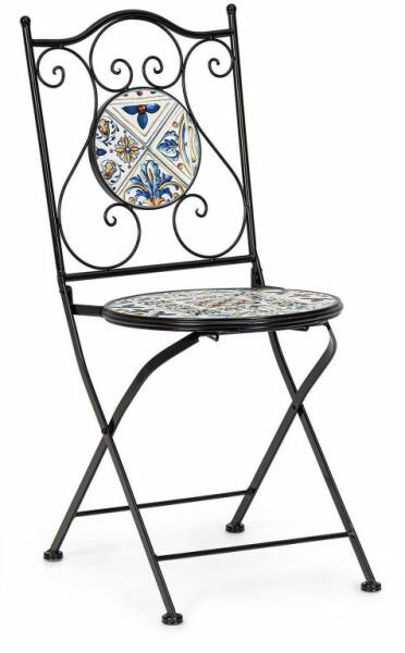 Mykonos összehajtható szék 38x46 cm Fedezze fel kertjének varázsát kovácsoltvas kerti bútorainkkal! Kínálatunkban olyan stílusos darabok szerepelnek, melyek gondosan megválogatottak, hogy otthonos környezetet teremtsen a szabadban. Az asztalok és székek mozaik mintákkal vannak díszítve, amelyek egyedi stílust és eleganciát kölcsönöznek kertjének. Válasszon kovácsoltvas b
