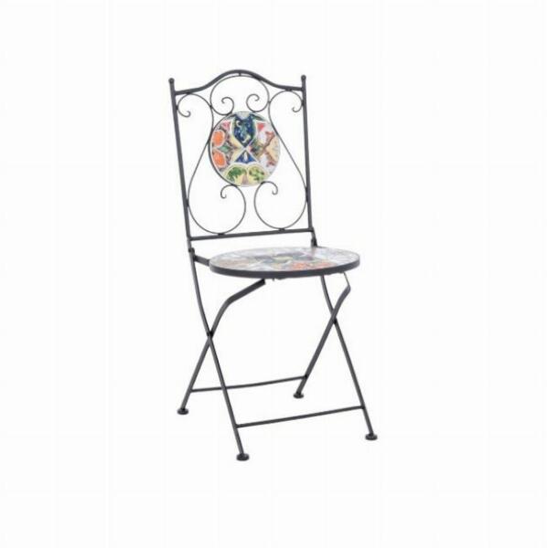 Paloma összehajtható szék 39x47x92x45 cm Fedezze fel kertjének varázsát kovácsoltvas kerti bútorainkkal! Kínálatunkban olyan stílusos darabok szerepelnek, melyek gondosan megválogatottak, hogy otthonos környezetet teremtsen a szabadban. Az asztalok és székek mozaik mintákkal vannak díszítve, amelyek egyedi stílust és eleganciát kölcsönöznek kertjének. Válasszon kovácsolt