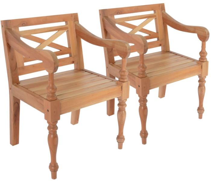 vidaXL 2 db világosbarna tömör mahagóni Batavia szék Ez a Batavia székgarnitúra a stílus és praktikum tökéletes ötvözete; konyhájába és étkezőjébe eleganciát csempészhet vele. Lenyűgöző látványt fog nyújtani bármilyen belső téren. Az elegánsan ívelt karfákkal rendelkező, kiváló minőségű székek tömör mahagóniból készültek, ami nagyon szilárd, tartós f