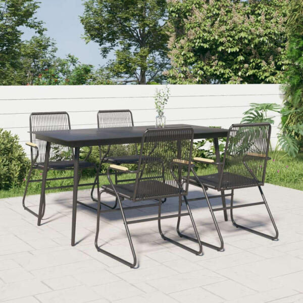 Élvezze a kellemes kávézást kültéri környezetében ezen a kerti étkezőgarnitúrán! Ez az étkezőgarnitúra kertje és terasza tökéletes kiegészítője lesz, és maradandó benyomást kelt! Tartós PVC rattan: A PVC rattan szilárdabb és tartósabb választás a természetes rattannál. A PVC olyan időjárásálló tulajdonságairól ismert, mint az UV-sugárzás elleni védelem és