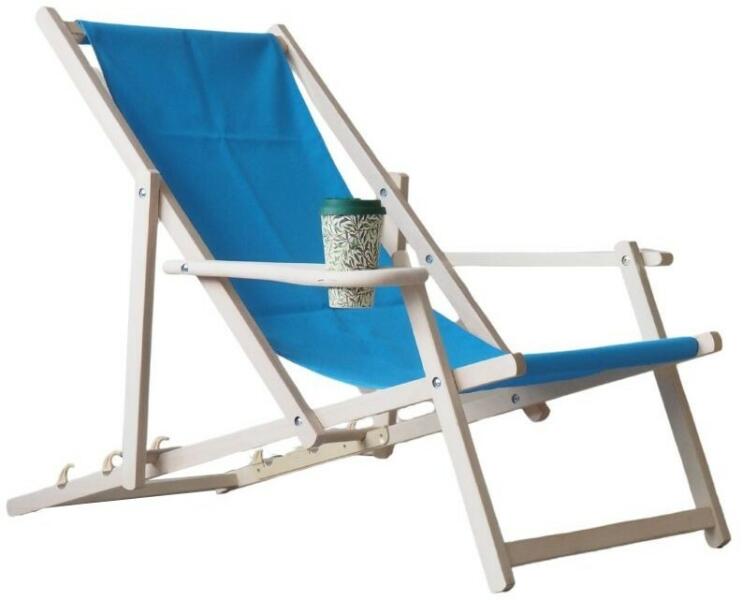 A fából készült nyugágy minőségi bükkfából készült. Ezáltal erős, tartós és stabil. Könyöktámasszal ellátott kényelmes karfák biztosítják a kényelmes ülést. A képen látható pohár nem része a csomagnak. A huzat erős és rugalmas anyagból készült, amely tökéletes kényelmet biztosít ülés közben. A vászon könnyen eltávolítható az összecsukható nyugágy