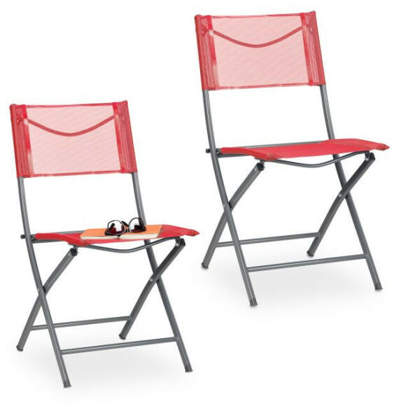 Modern és kényelmes összecsukható kerti szék, vízálló anyagból készült. Helytakarékosan tárolható. A légáteresztő anyagnak köszönhetően kényelmesen pihenhet a nyári hőségben is. Anyag: porszórt acél, légáteresztő anyag Méret: 87 x 55 x 48 cm Súly: 3,4 kg Összecsukva: 100 x 55 x 12 cm A háttámla magasság: 45,5 cm Ülésmagasság: 45 cm Ülés: 42 x 42 cm Max. 130