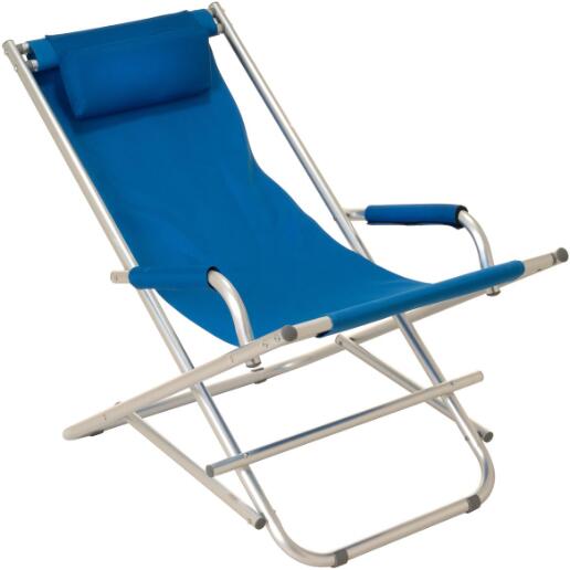 Összecsukható piknikszék, amely gyorsan felállítható és használatra kész, és ugyanilyen gyorsan összecsukható. A szék váza szürkére festett alumíniumból és kék PVC borításból készült. Az anyag puha és alkalmazkodik a test körvonalaihoz. A kerti szék PVC-anyaga víztaszító és 110 kg-ig bírja a terhelést. Az alumíniumkeret stabil, és profilokkal ellátott csúszás
