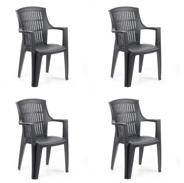 Kerti szék polipropilénből. Kartámaszt tartalmaz, hogy kényelmes legyen a kinti pihenés. A szék amellett, hogy ellenáll a légköri hatásoknak, könnyű és könnyen kezelhető, könnyen tárolható vagy szállítható. Egymásra rakható, maximális helymegtakarítást garantálva a használaton kívül. Könnyen tisztítható. Használaton kívül száraz és szellőző helyen tárolja.