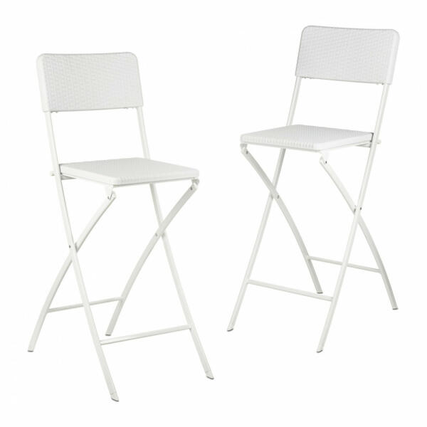 BASTIAN kerti összecsukható háttámlás bárszék 2db-os szett fehér A BASTIAN bárszék kényelmes ülőké lesz minden ünnepségen. Nagy 80 cm-es ülésmagasságának köszönhetően ideális állóasztalokhoz, bárokhoz és pultokhoz. Mint minden BASTIAN bútor, a bárszék is időjárásálló rattanból készült. Használja a kertben, az erkélyen vagy kempingezéskor. Az acélváz rend