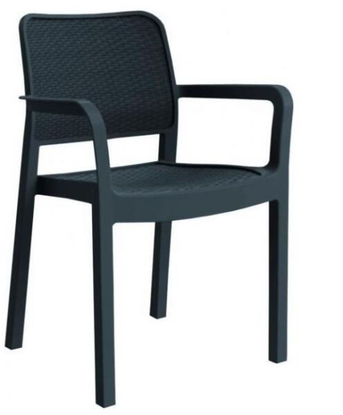 Kerti müanyag fotel antracit színben. Modern design, könnyu karbantartás, rendkívül ellenáló. Müszaki adatok: méret: 58 x 53 x 83 cm anyag: müanyag szín: antracit súly: 3,3 kg gyártó: Allibert Csomag tartalma: 1 x kerti fotel