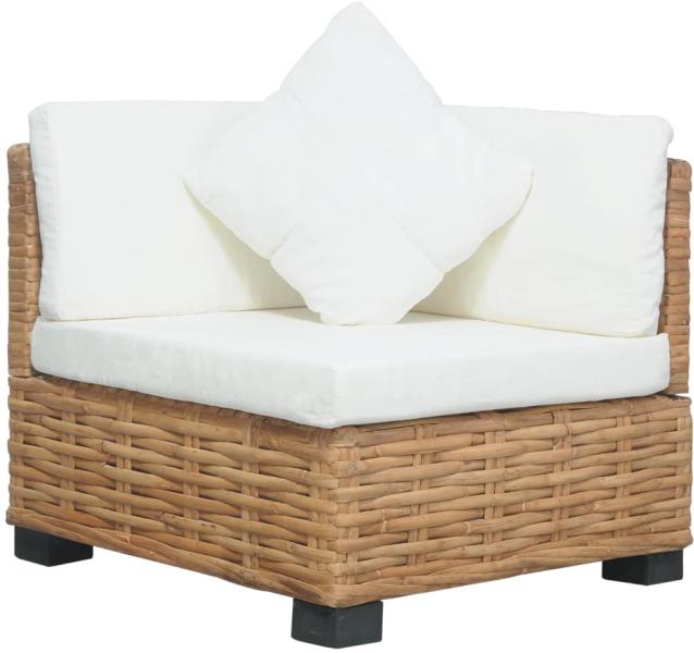 vidaXL természetes színű rattan sarokkanapé párnával Ez a stílusos és praktikus sarokkanapé nagyszerű kiegészítője lehet nappalija vagy egyéb helyisége berendezésének! A váza valódi rattannal lett beborítva, mely természetes kinézetével és tapintásával, dekoratív vesszőfonatos mintázatával nemcsak vonzó megjelenésű, hanem strapabíró is. A kanapé lábai mahagóni