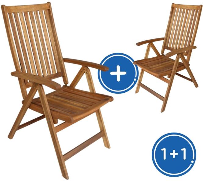 1 + 1 ingyenes promóció:1 csomag rendelése esetén automatikusan 2 darabot kap. Almiro dönthető kerti székÉlvezze a pihenést a szabadban vagy a pavilonban fa kerti bútorainkkal! Az Almiro szék kiváló minőségű akácfából védőolajjal kezelt, amely tökéletes az igényes kültéri körülményekhez. Az ülés mérete 46,5 × 47,5 cm, és alaphelyzetben 46 cm-rel van a talaj felett