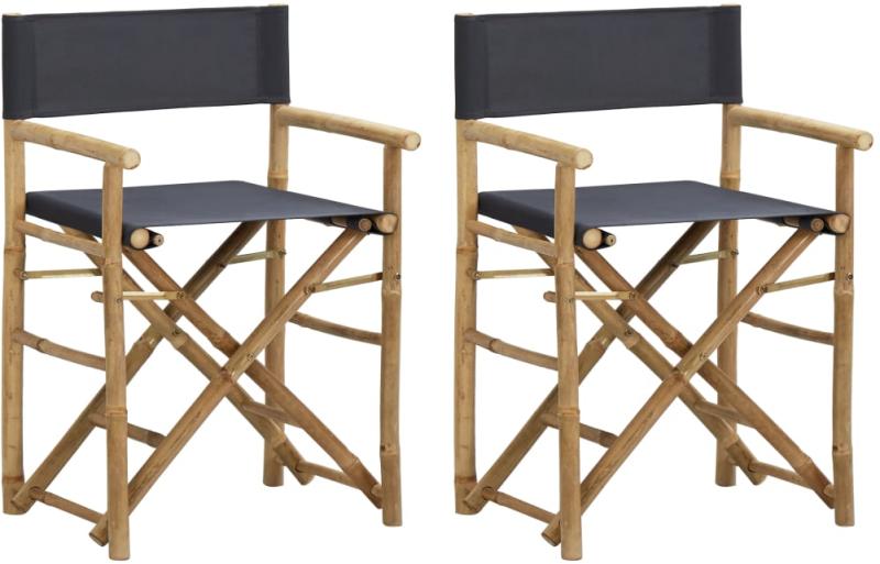 vidaXL 2 db sötétszürke bambusz és szövet összecsukható rendezői szék Ez az összecsukható szék nagyszerű választás, ha kertjében vagy teraszán kíván pihenni. A bambuszból készült kültéri szék masszív és könnyen tisztítható. A szövet ülés és háttámla tovább növeli a székek kényelmét. Emellett a kerti szék használaton kívül a helytakarékosság érdekébe