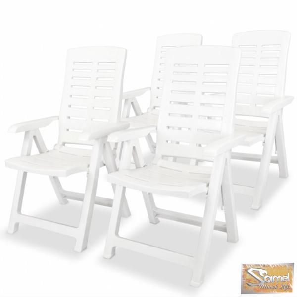vidaXL 4 db fehér dönthető műanyag kerti szék Ezek az időjárás viszontagságainak ellenálló kerti székek nagyszerű kiegészítői lehetnek kertjének, vagy verandájának. Ideális választást jelentenek, ha a kellemes időt együtt töltené a családtagjaival vagy barátaival egy társalgás keretében. Az összecsukható székek strapabíró műanyagból készültek, így ellenáll