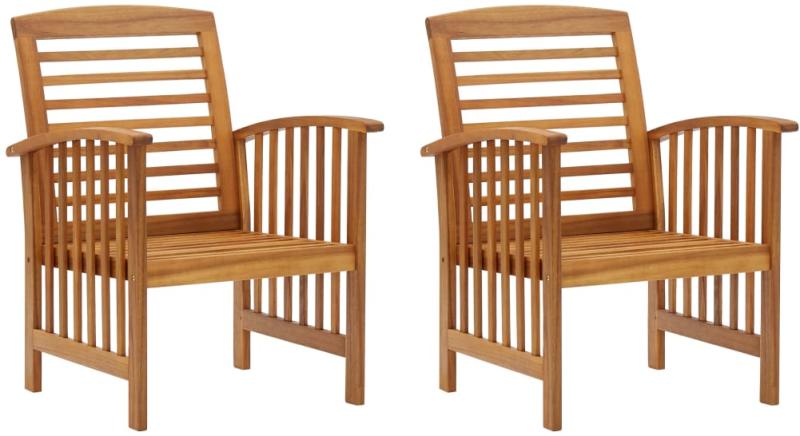 vidaXL 2 db tömör akácfa kerti szék Ez a 2 kerti faszékből álló szett úgy lett megalkotva, hogy kertje, udvara vagy terasza fénypontja legyen! A kültéri szék tömör, olajbevonatos akácfából készült, így stabil és tartós. A kézműves munka és a fa gyönyörű erezete minden bútordarabot egyedivé, valamint a többitől kissé eltérővé varázsol. Figyelem: A szín és az