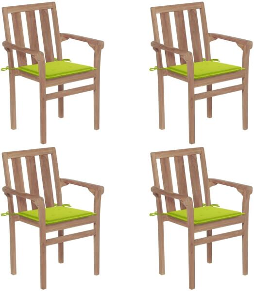 vidaXL 4 db rakásolható tömör tíkfa kerti szék párnákkal Ez a rakásolható, tömör tíkfa kerti székszett örökzöld kiegészítője lehet a kertjének, teraszának vagy erkélyének! Nagyszerű választás étkezéshez. A strapabíró tík keményfából készült bútordarab természetesen, illetve kemencében volt szárítva, majd finomra lett csiszolva az elegáns megjelenés érde