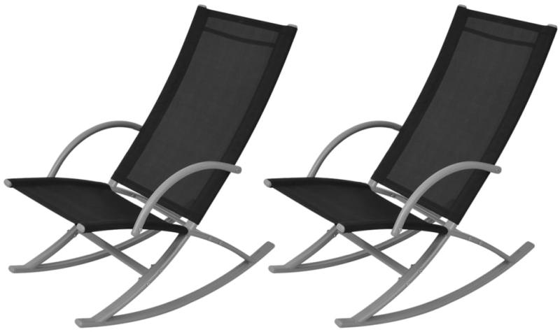 vidaXL 2 db fekete acél és textilén kerti hintaszék A kerti hintaszék a könnyű lengésével lehetővé teszi a napozás közbeni szunyókálást vagy a henyélést. Ez a teraszt vagy a kertet pihenő oázissá változtatja. Pihentesse a hétköznapi rohangálásban elfáradt testét és elméjét, ezzel a hintaszékkel. A stabil keret kiváló minőségű acélból, míg a fekvő terület t