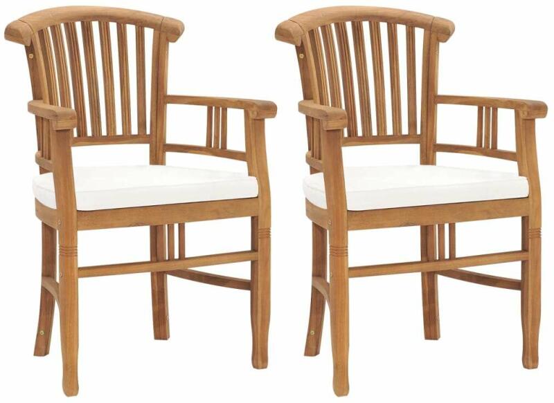 vidaXL 2 db tömör tíkfa kerti szék krémfehér párnákkal Ez a 2 db fa kerti székből álló szett kertje, terasza vagy étkezője időtlen kiegészítője lesz! Ez a rendkívül strapabíró kemény tíkfából készült bútor természetesen, illetve kemencében volt szárítva, majd finomra lett csiszolva az elegáns megjelenés érdekében. A tíkfa szilárd és ellenáll az időjárás