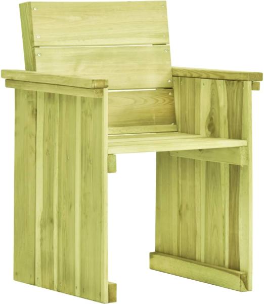 vidaXL impregnált fenyőfa kerti szék Lazítson vintage stílusú kerti székünkben, mely elegáns és időtálló dizájnjával bármilyen kültéri dekoráció praktikus és klasszikus kiegészítője lehet. Ez a tanúsítvánnyal ellátott, tömör fenyőfából készült kültéri szék kiemelkedően strapabíró és időjárásálló. A széket elhelyezheti a kertben vagy a teraszon, és b