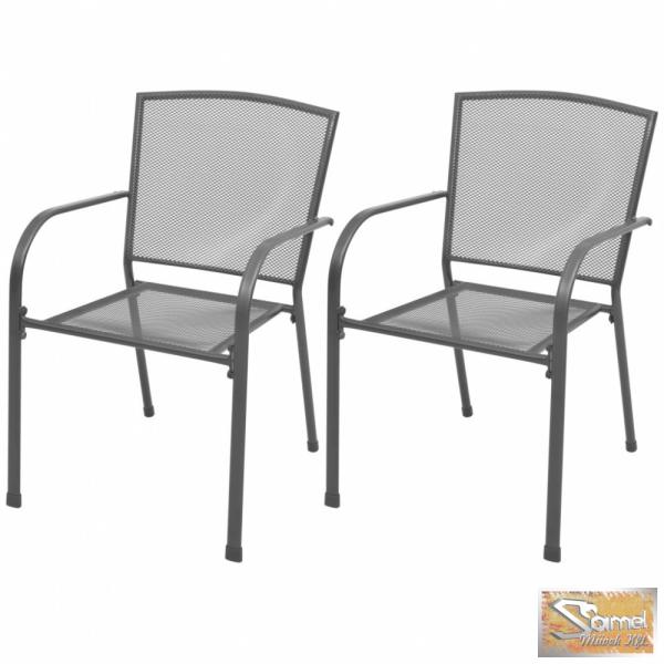 vidaXL 2 db szürke rakásolható acél kerti szék Ezek a fém étkezőszékek, elegáns hálós kialakítással rendelkeznek és egy csipetnyi modern hangulatot csempésznek verandájára, kertjébe vagy étkezőjébe. Vendégei el lesznek ragadtatva, ha meglátják ezeket az ipari hangulatot árasztó székeket. A kiváló minőségű székgarnitúra strapabíró acélból készült, e-bevonatt