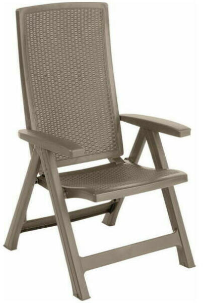 Az Allibert Montreal dönthető műanyag kerti szék a kényelmes pihenés támogatója. A fotel négy féle pozícióban állítható, ezért aztán ugyanannyira alkalmas az étkezőasztalnál való üléshez, mint az udvar csendjében elmerülő, zavartalan, testet ellazító relaxáláshoz. A maximális praktikusságon kívül szót érdemel a modell eleganciája, melynek köszönhetően nemcsa