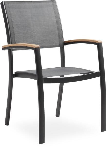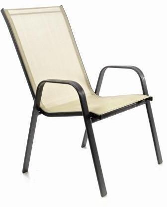 A robusztus acélból készült kényelmes egymásra rakható szék ideális beltéri és kültéri használatra. Az ülőrész és a háttámla krémszínű elasztikus anyaggal borított. A keret színe fekete. A még nagyobb kényelem érdekében a szék könyökvédővel van felszerelve. A székek egymásra rakhatók, helytakarékosság érdekében egyszerűen csúsztasson egymásba több szék