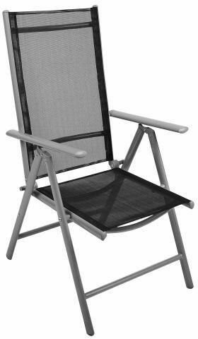 Ez a gyönyörű fekete szék alkalmas kertbe, erkélyre, teraszra vagy akár kempingezésre is. Ezzel az alumínium székkel 7 módon rögzítheti a háttámlát. A szék könnyű, kompakt és nagyon kényelmes. A kiváló minőségű anyag időjárásálló. A textil varratok hegesztettek. Anyagának köszönhetően a szék optimális szellőzést biztosít az ülés és a dőlés helyén. Term