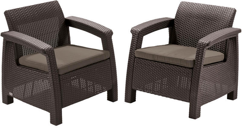 Corfu Duo Set 2 db-os műanyag rattan hatású kerti fotel készlet, barna - meleg taupe színkombináció, ülõpárnákkal. - Curver 17197993 - 223194-258944