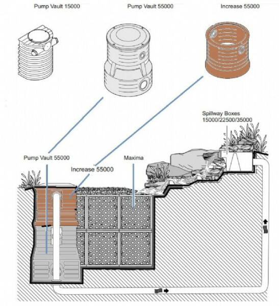 Szivattyúház magasító Az Oase Pump Vault 55000 szivattyúház 432 mm-rel történő magasítására szolgáló termék.