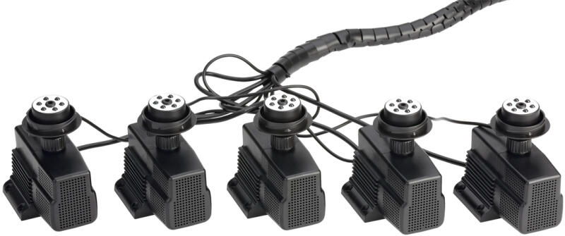 Water Quintet Creative kreativ szökőkút szett minden elképzelés megvalósításához. Az öt különálló szivattyú különféle konfigurációkban telepíthető.