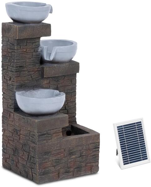 Néha az az érzése, hogy valami hiányzik a kertjéből? Mit szólna egy napelemes szökőkúthoz? A solar szökőkút napelemmel működik, a víz halk csobogása pedig kellemes hangulatot varázsol kertjében, és nem utolsósorban stílusosan mutat. A napelemes csobogó három falra szerelt edénnyel rendelkezik. A lapos hátlapnak köszönhetően a szökőkutat optimálisan a kert szélére